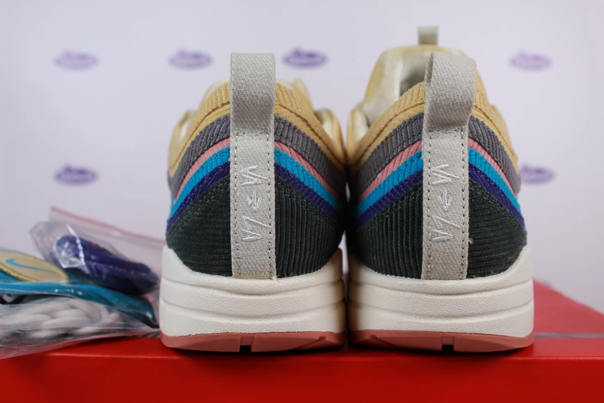 We describe the condition of this pair of Nike Air Max 1/97 VF SW Sean Wotherspoon as: Pre-owned – Worn a few times only. Box: Original (+ extra laces). We cannot guarantee the wearability of sneakers. View all photos in combination with the condition description carefully to make a good estimate. The older the sneakers, the greater the risk of wearing them. We label sneakers older than 10 years as vintage sneakers. If you need help with the estimation, send us a message.