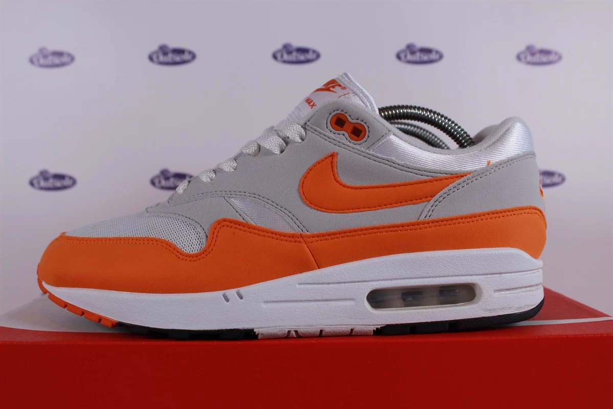 We describe the condition of this pair of Nike Air Max 1 Magma Orange Anniversary as: Pre-owned – Worn a few times only. Box: Original. We cannot guarantee the wearability of sneakers. View all photos in combination with the condition description carefully to make a good estimate. The older the sneakers, the greater the risk of wearing them. We label sneakers older than 10 years as vintage sneakers. If you need help with the estimation, send us a message.