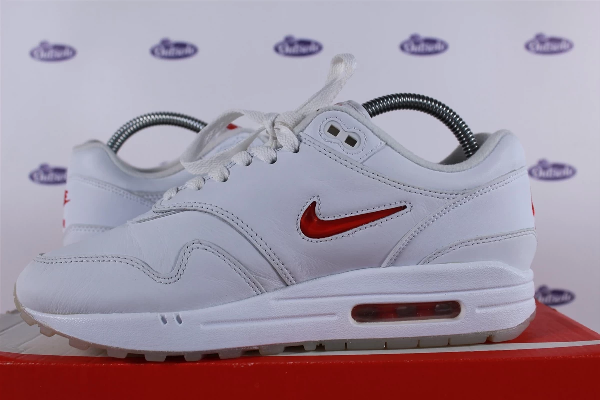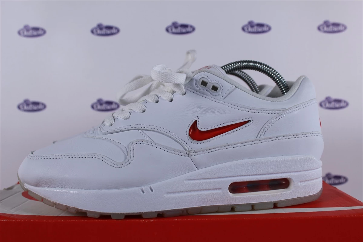 Buy the Nike Air Max 1 Premium SC Jewel Red Ruby (918354-104) online at Outsole. The perfect pair for your sneaker collection. You won’t find these exclusive sneakers in regular stores. They are released limited in the year 2017. The full size of this sneaker is US 9.5 – UK 8.5 – EU 43 – CM 27.5.